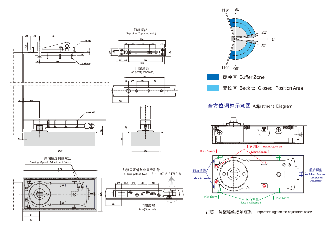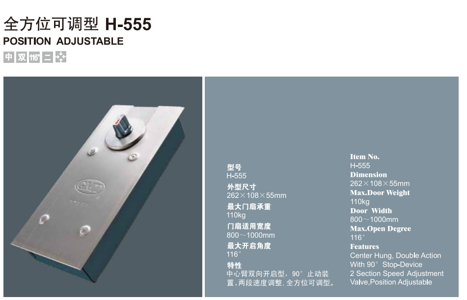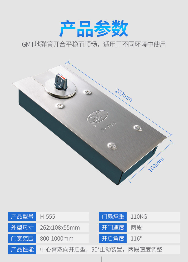 GMT ground spring H-555 adjustable left and right spring glass door 90 degrees Position with frame wood door universal
