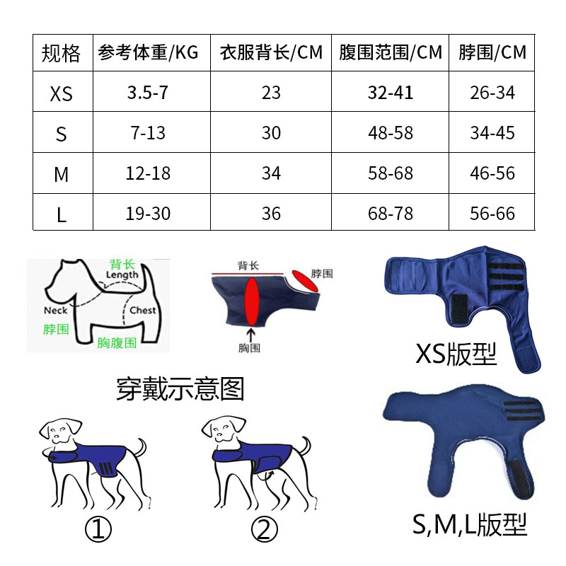 XS (chest abdominal circumference 32-41CM S (chest abdominal circumference 48-58CM) M (chest abdominal circumference 58-68CM L (chest abdominal circumference 68-78CM)