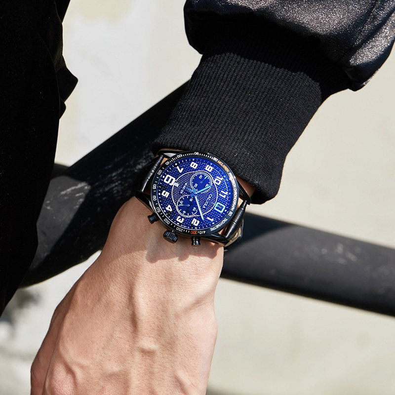 Corolla Men's Watch Waterproof Fashion Men's Watch Leather Band Black Sports Quartz Trend Non-Mechanical Watch 1059