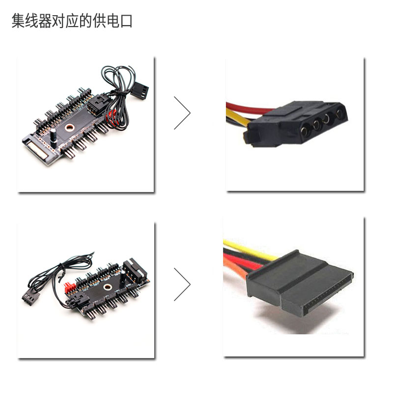 Motherboard 4-pin temperature control speed control cooling fan hub can be connected to ten power supplies, large 4D hard disk SATA power supply