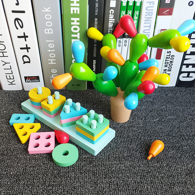 Montessori 1-2-3 years old children early education cactus wooden blocks inserted baby intelligence toys