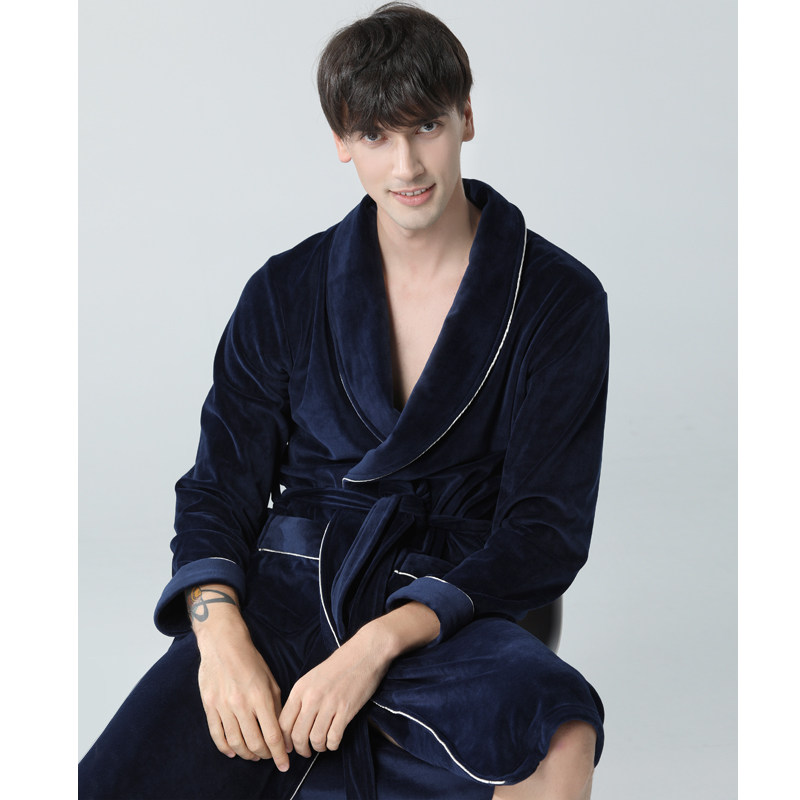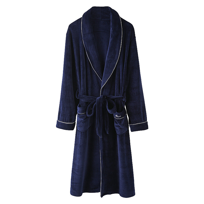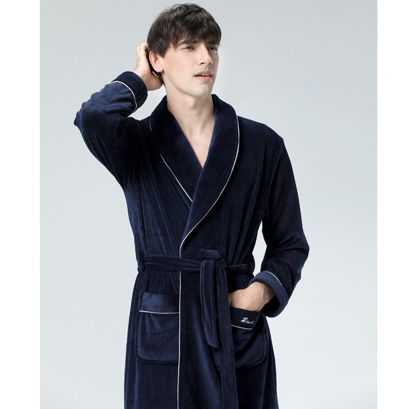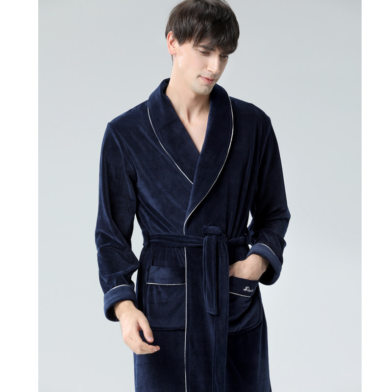 IIZZINI NIGHTGOWN men's winter coral velvet thickened flannel warm medium-long bathrobe pajamas home clothes