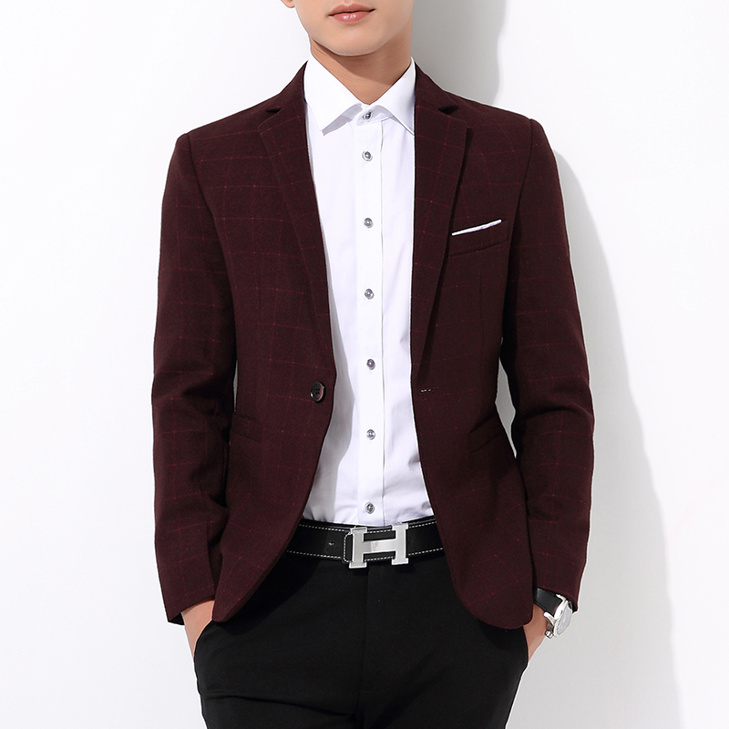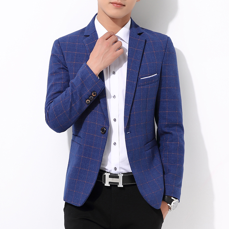 Men's casual suit Korean version single top handsome trendy plaid small suit men with a set of all-match coat