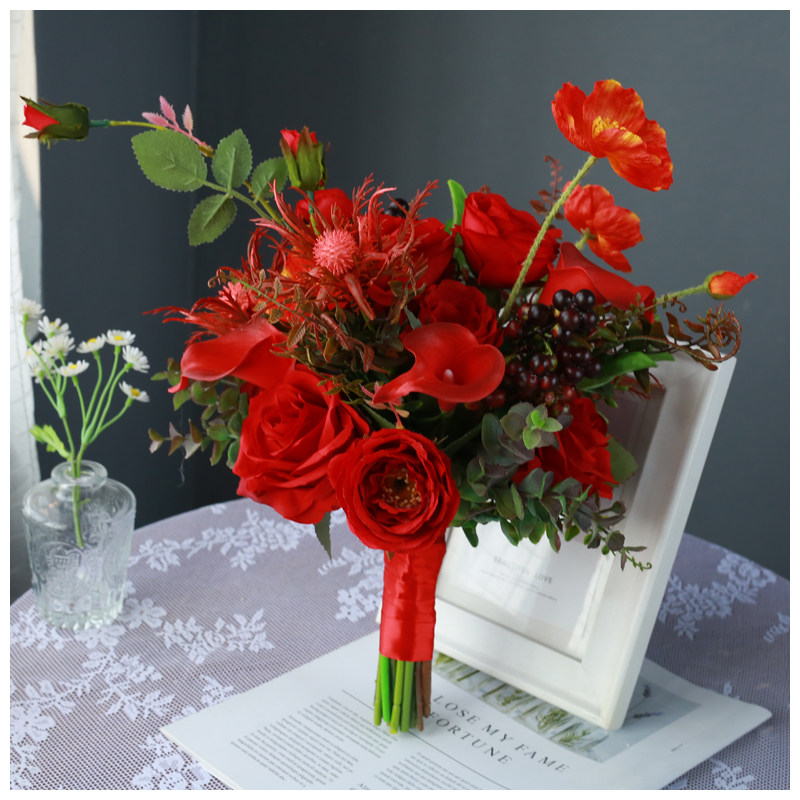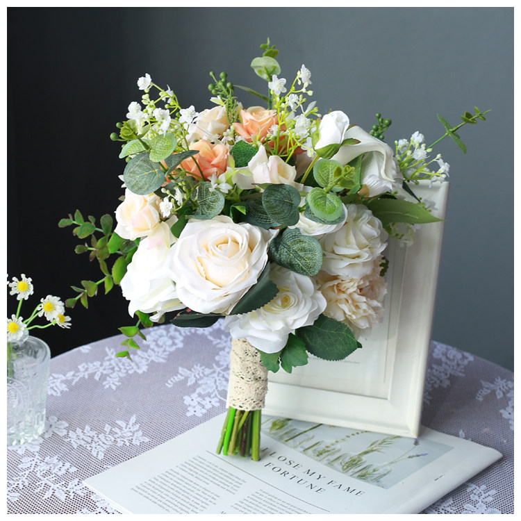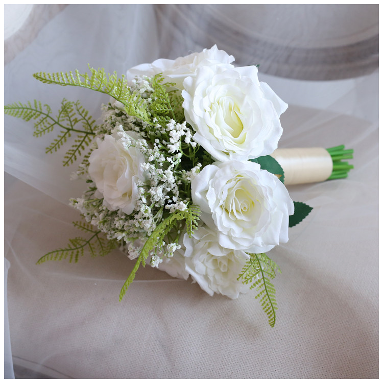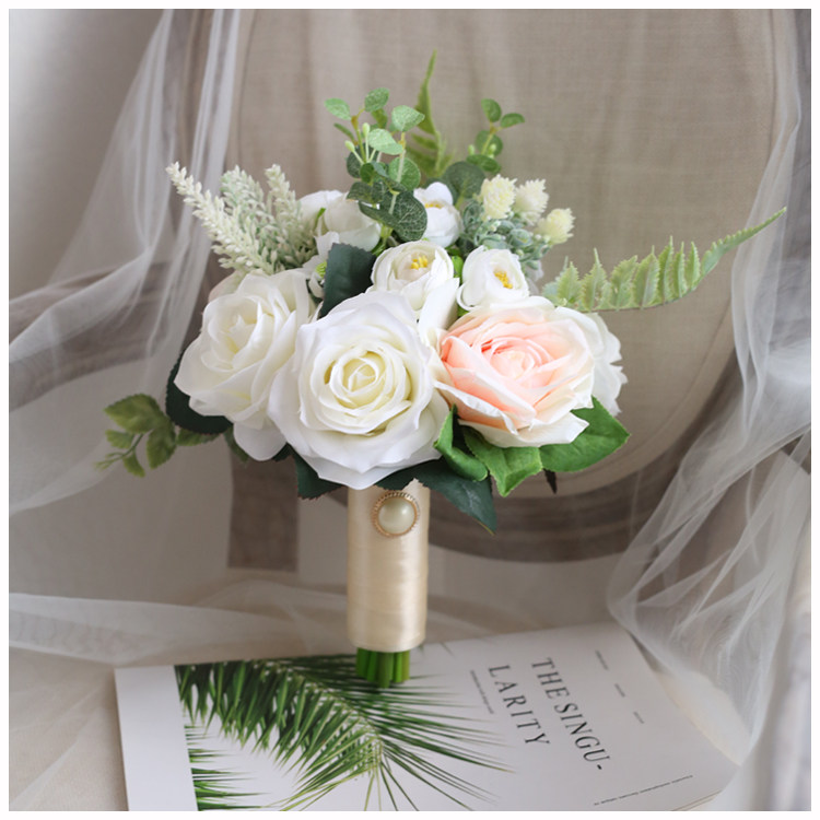 Sen-style Korean bridal hand touted white powder rose ball emulated bouquet wedding wedding wedding dress Photography Photography Brigade Pat
