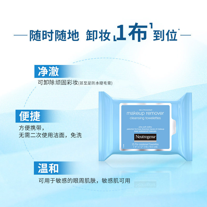 Neutrogena deep cleansing makeup remover wet tissue 25 pieces Leave-in quick, gentle and convenient removal of makeup One-time cleaning