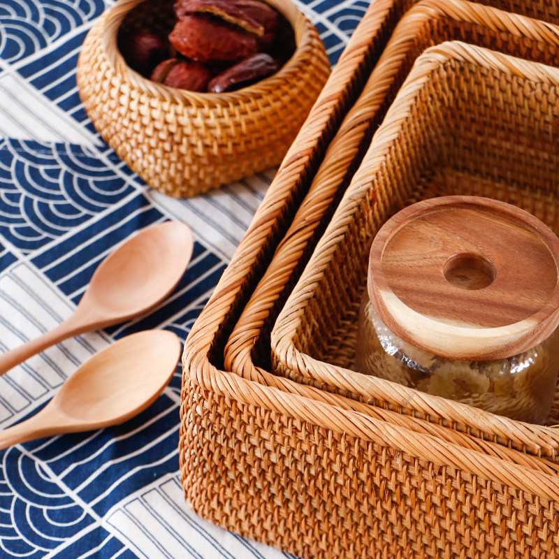 Rattan tray small rattan tray medium rattan tray large rattan tray 3-piece set rattan rectangular basket small rattan rectangular basket medium rattan rectangular basket large rattan rectangular basket three-piece rattan rectangular tray