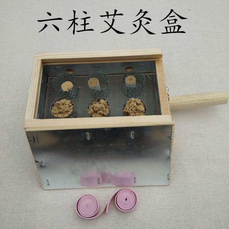 Six-column ginger moxibustion moxibustion box solid wood 6-pin six-hole clamshell portable moxibustion household whole body universal