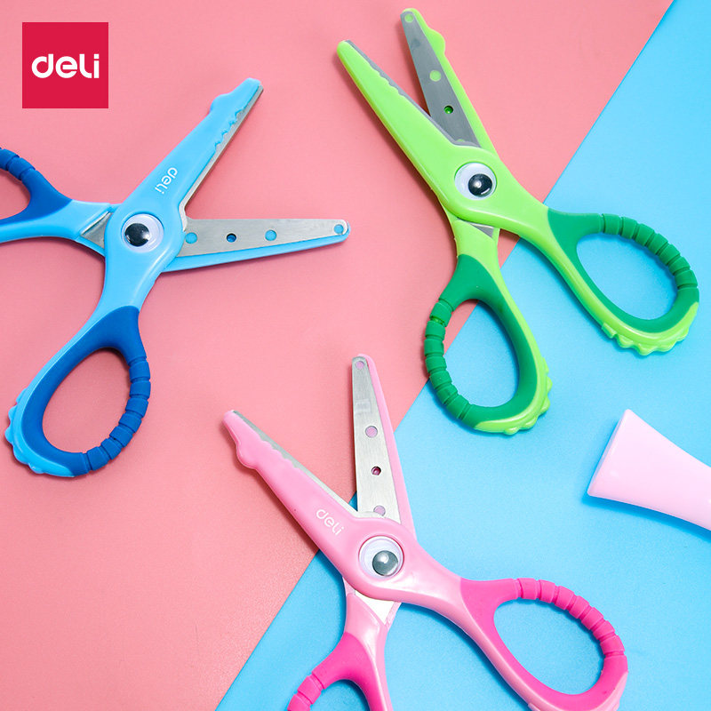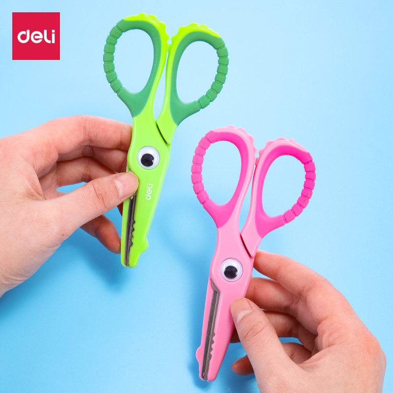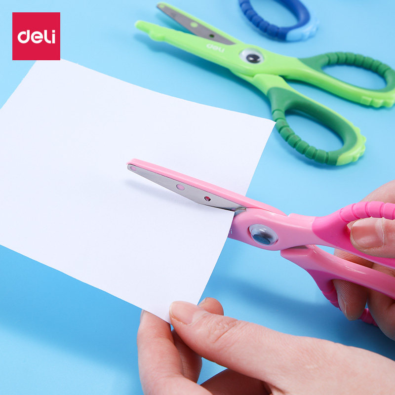Deli handmade elementary school scissors Children's paper cut safe 3-6 years old round head baby suit does not hurt the hand cute