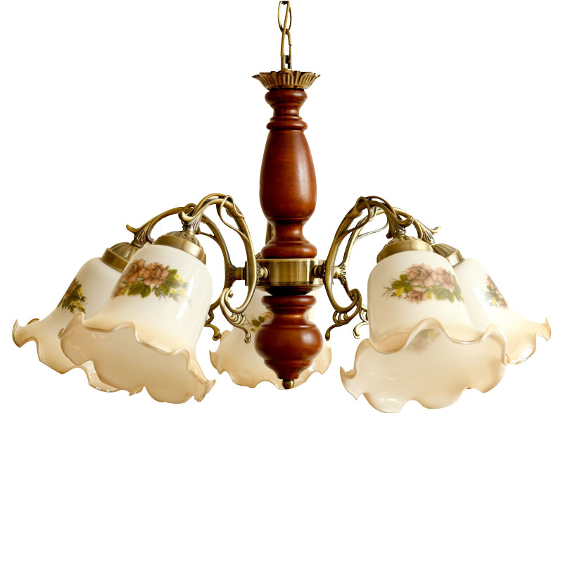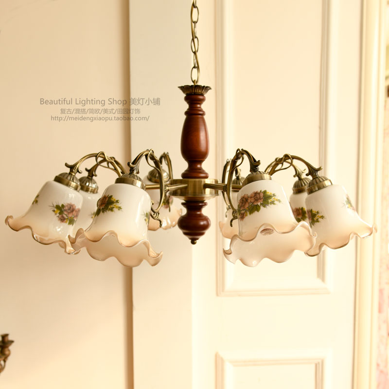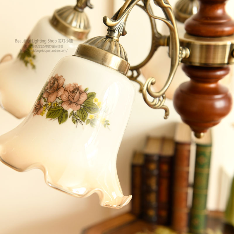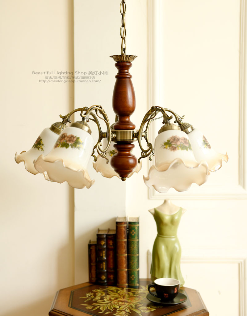 Living room chandelier bedroom American pastoral country style retro solid wood lamp five head chandelier creative painting new Chinese style