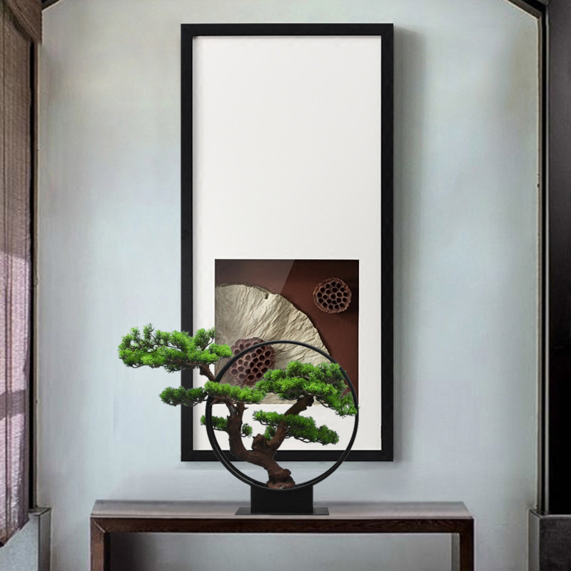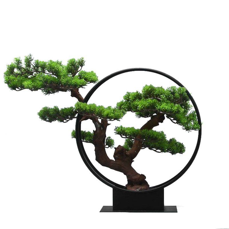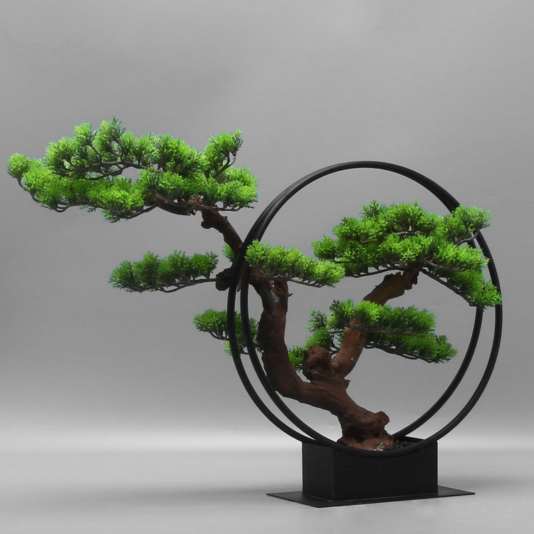 New Chinese simulation wrought iron Lohan pine bonsai office hotel front desk entrance Zen Penglai pine fog pine Bonsai