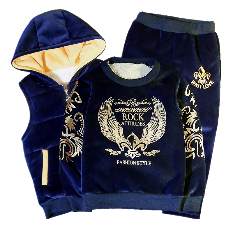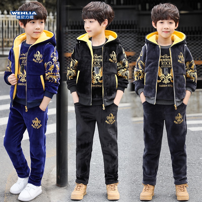 Boy autumn winter clothing gold velvet suit 2022 new children suit thickened and added with three sets of Korean version of winter boomer