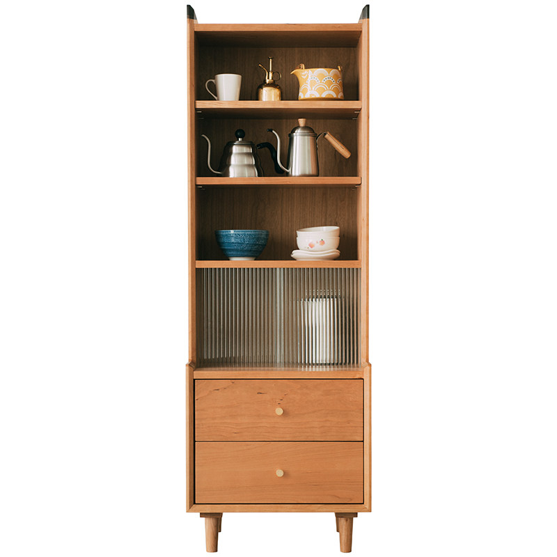 Floating Life Nordic Solid Wood Bookcase Cherry White Oak Model Cabinet Design Vertical Cabinet Storage Cabinet Bookshelf High Cabinet