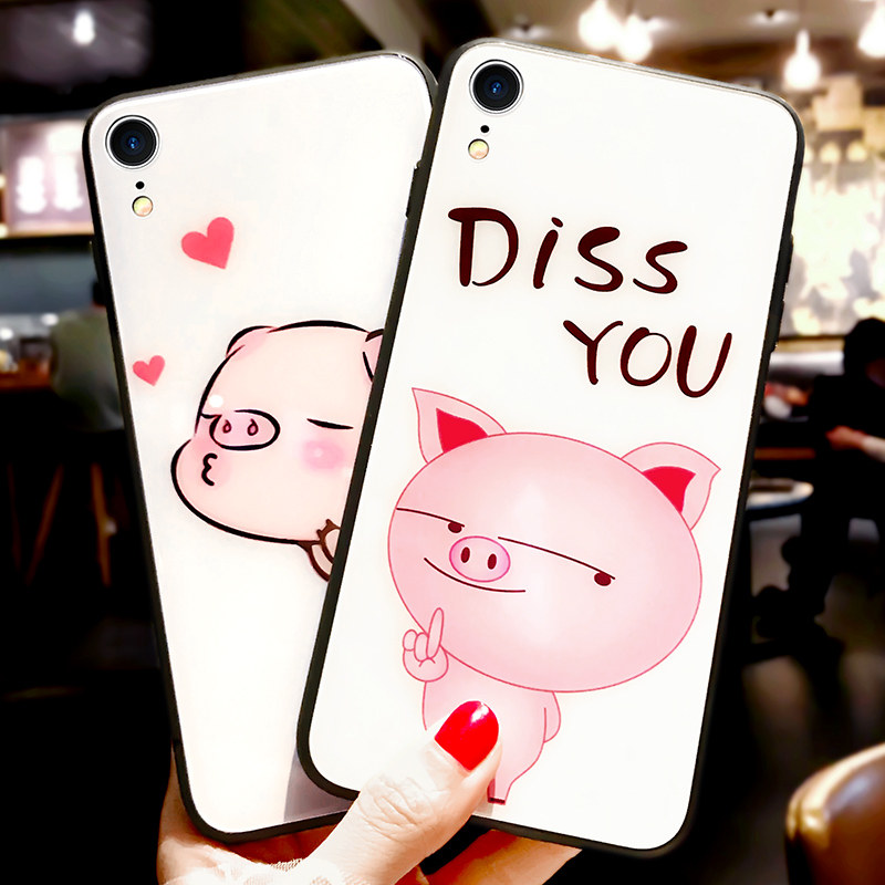 DZ piggy iphone xr phone protective shell apple xr anti-fall lady cartoon cute glass apple xr little fresh all-bag silicone gel soft edge iphonex r new personality wave