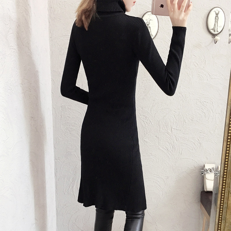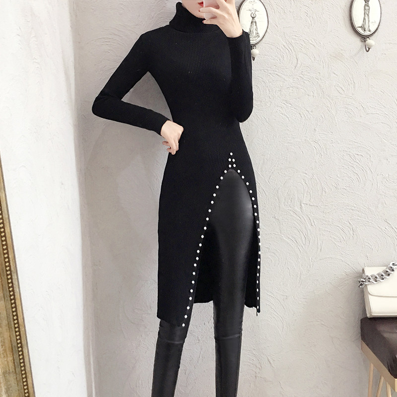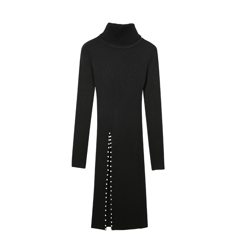 High collar sweater dresses mid-length version 2022 new spring autumn season Korean version fashion cover nail beading underhand jersey damp