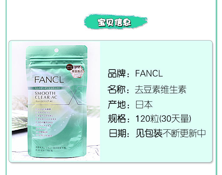 Japan's Japanese version of FANCL removes beans to print nutrienpox imprint pills 120 tablets 30th