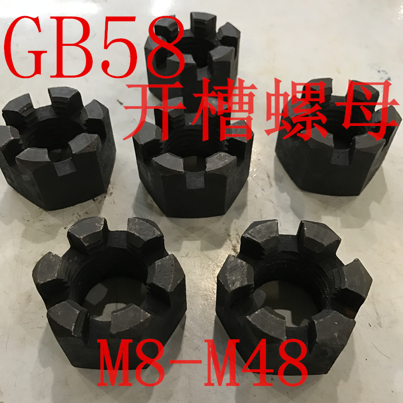 Hexagonal slotted nut fine tooth blossom GB58 M12 carbon steel M16M20M24M27M30M36M42M14M48