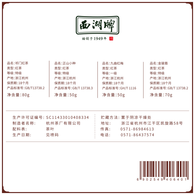 West Lake brand black tea Jinjunmei Zhengshan small seed Keemun black tea Jiuqu red plum tea gift box gift 250g