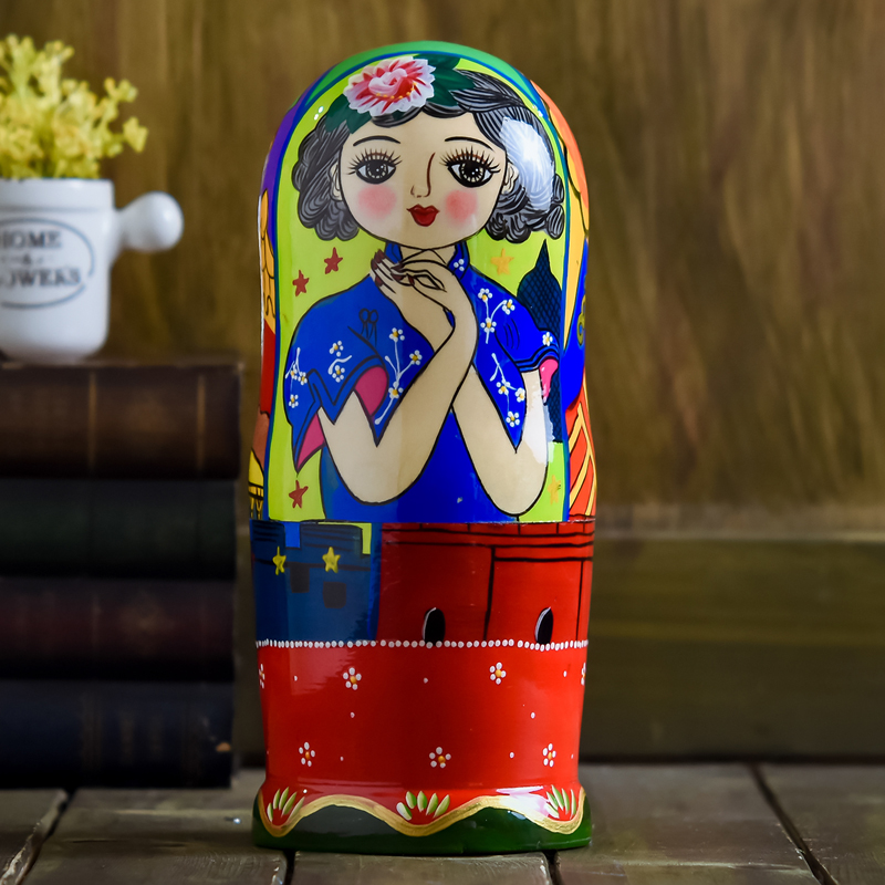 Matryoshka 10-layer air-dried basswood pure handmade three-sided beauty pattern holiday gift creative decoration