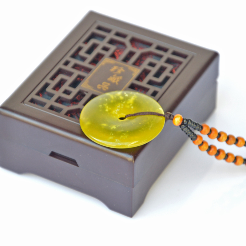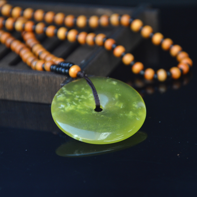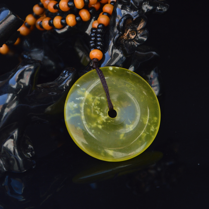 Shaanxi Golden Jade safe buckle pendant 38mm serpentine stone Jade Lantian jade pendant with lanyard packaging box