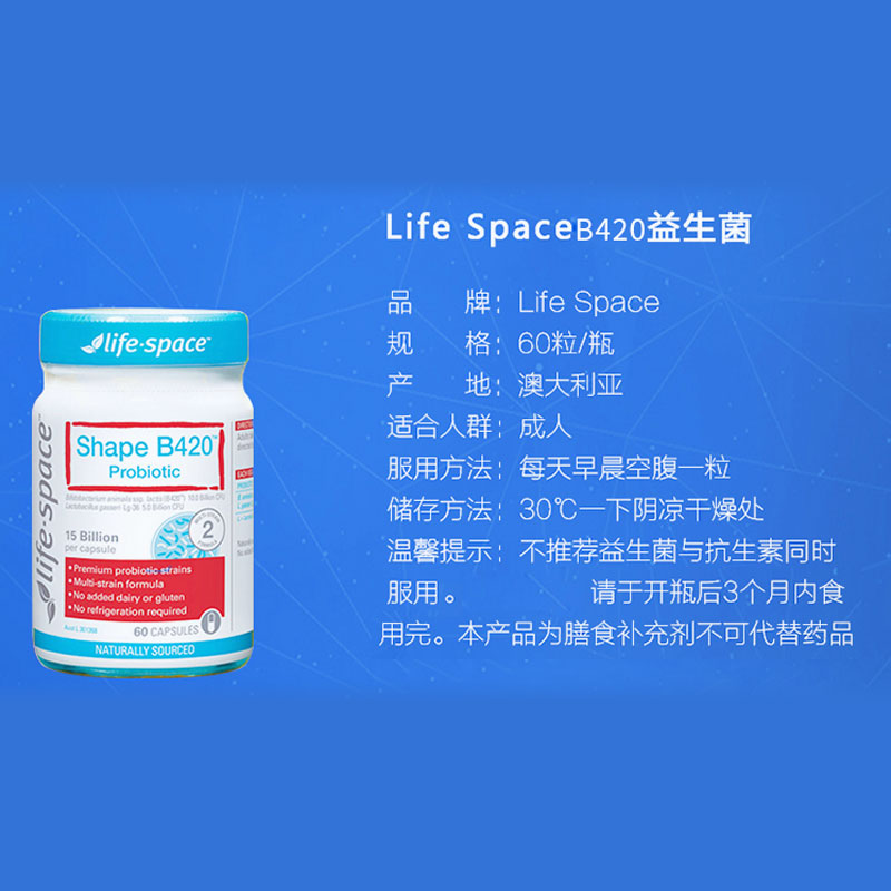 Australian lifespace B420 probiotic capsules 60 capsules for adults to adjust the stomach and intestines to shake the flesh body and lose weight easily