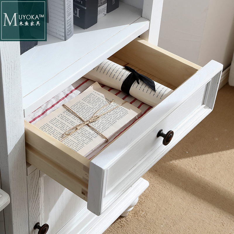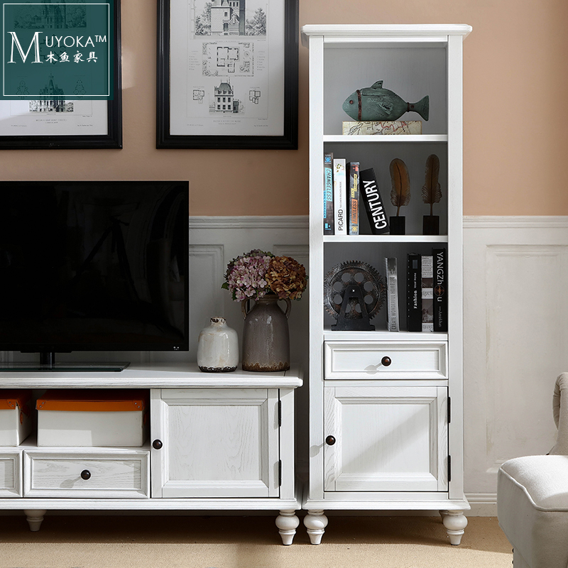 American Countryside White Wax Wood Living Room TV Cabinet Combined Side Cabinet Wine Cabinet Solid Wood Locker-Taobao