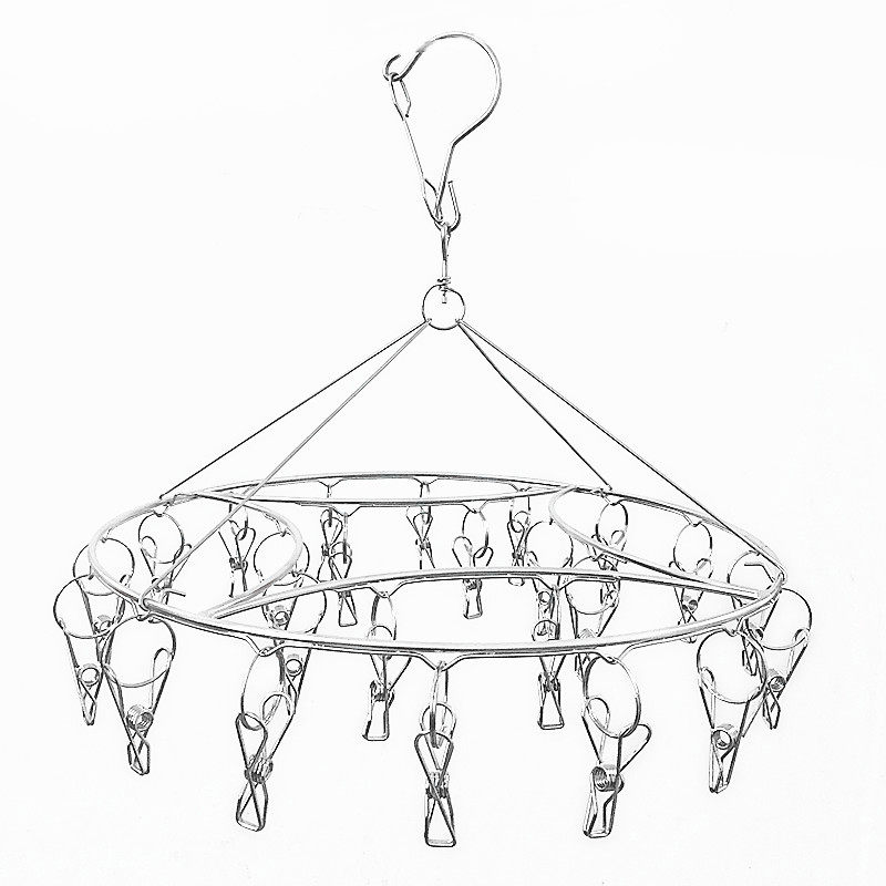 Clothes hanger multi-clip stainless steel drying socks clip baby towel hook windproof multifunction round sunwear clothes rack