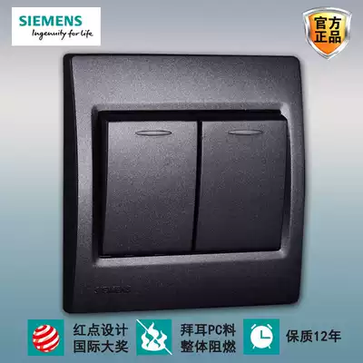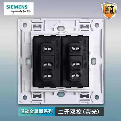 Siemens two open double cut fluorescent switch panel smart metal black 86 household wall double switch double luminous