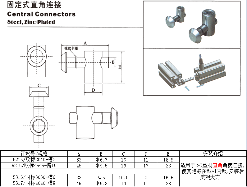 5211 European standard 3040-slot 8 (0 180 degrees) 5212 European standard 3040-slot 8 (90 degrees) 5213 European standard 4545-slot 10 (0 1