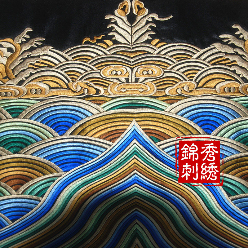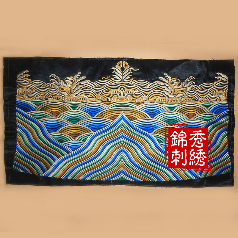 The Qing minister of the Qing Dynasty embroidered the sea water with a sea cliff, and the ancient Xiangrui wavy official served with a long skirt hem.