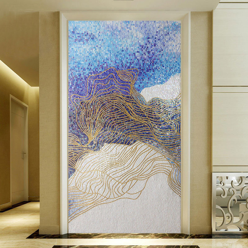 Modern Minimalist Abstract Mosaic cut painting Xuanguan Dining Hall Aisle Puzzle Background Wall Mirror Line Decoration Mural Painting