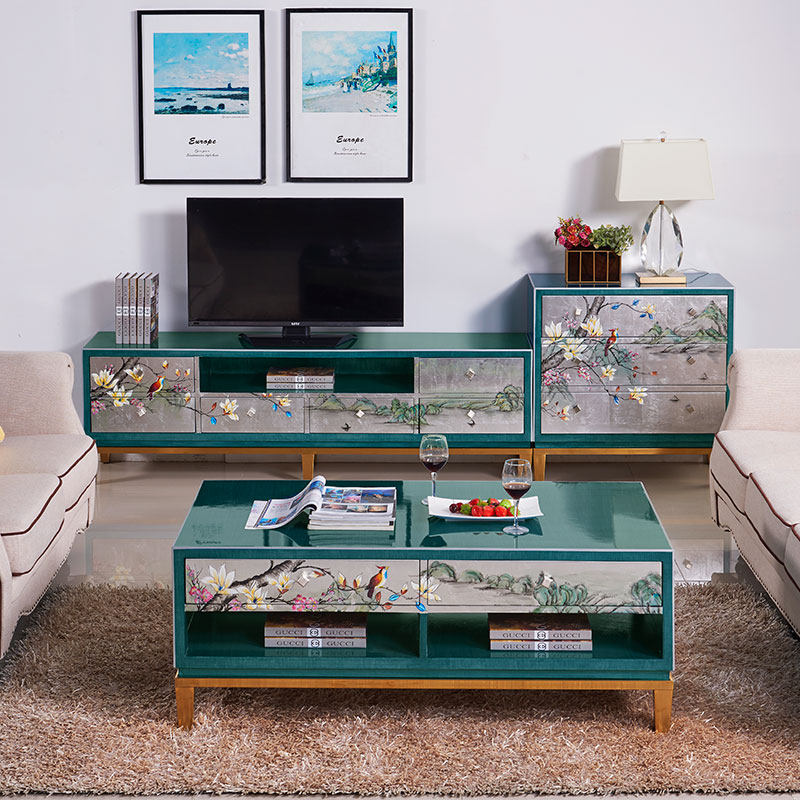 American furniture solid wood floor cabinet home painted low cabinet new Chinese living room coffee table TV cabinet combination small apartment