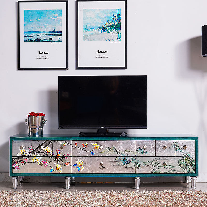 Solid wood silver-plated TV cabinet 1.8m gold-plated foot TV cabinet 1.8m gold-plated foot TV cabinet 2.0m coffee table