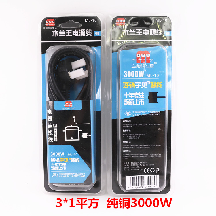 New Mulan Wang power cord rice cooker quick cooking pot 3000W 4000W 10A 1 5 square pure copper wire