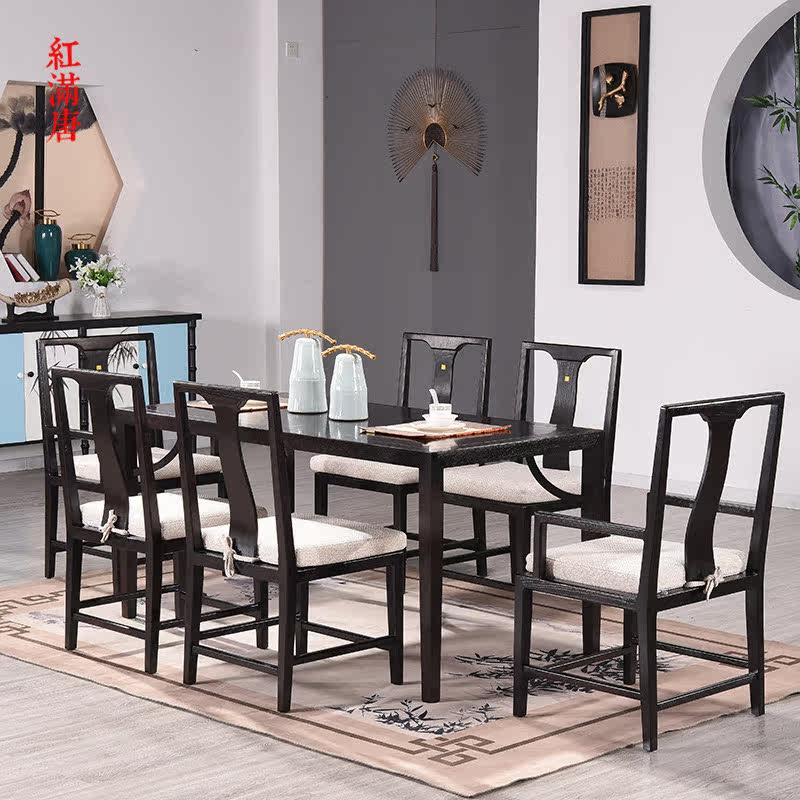 A table of six chairs at a table.