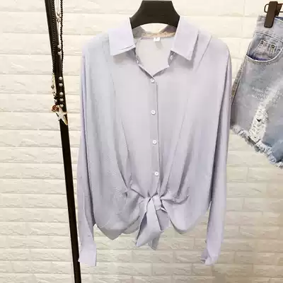 Hem knot long sleeve chiffon shirt Women autumn port flavor chic thin solid color bat sleeve sunscreen shirt