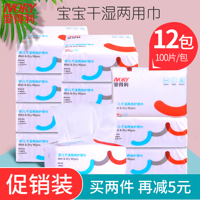 Adler Cotton Soft Towel Infant Dry and Wet Towel Baby Face Wash Towel Non-Wet Paper Towel Newborn 100*12 Pack