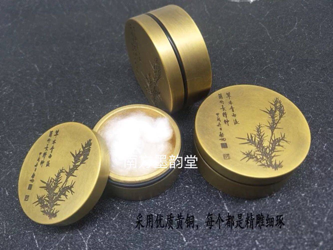 Multifunctional brass ink pad box Antique round copper ink cartridge student calligraphy supplies leak-proof ink thread ink plate