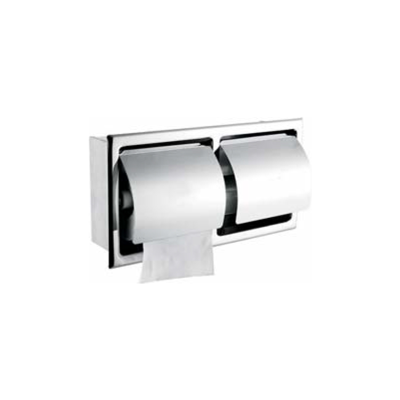 Mujie 304 stainless steel in-wall embedded double roll toilet paper holder Powder room embedded tissue box holder Toilet paper holder concealed
