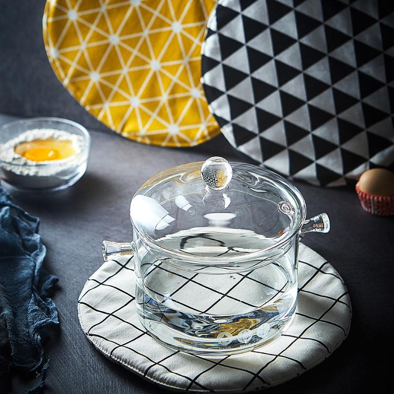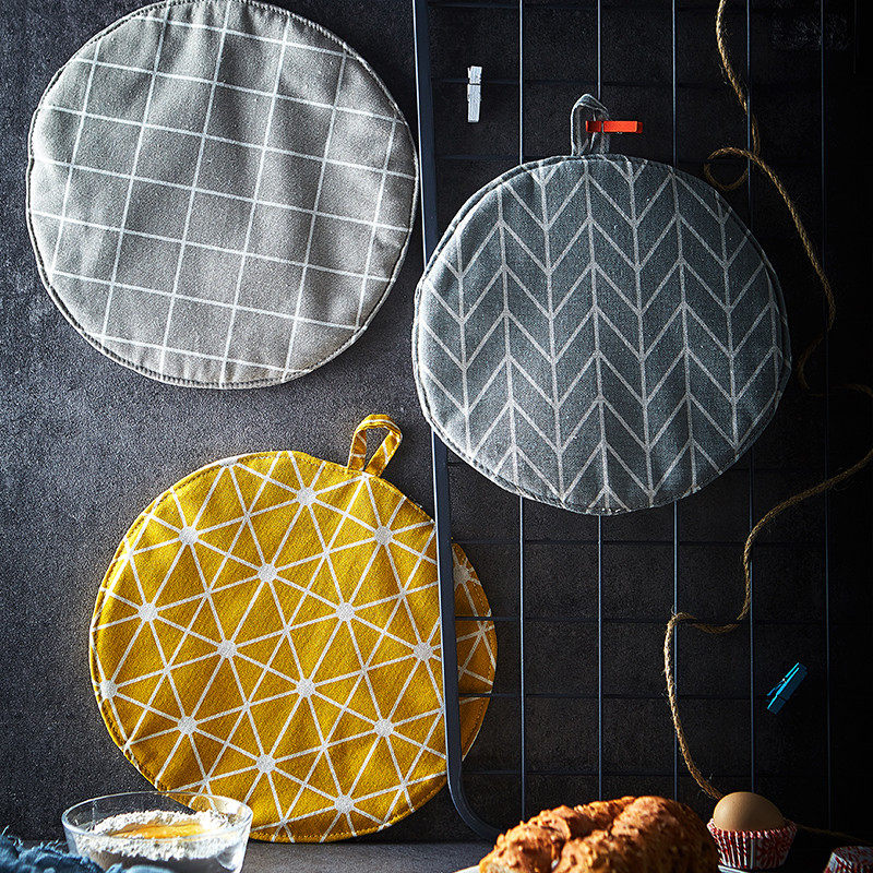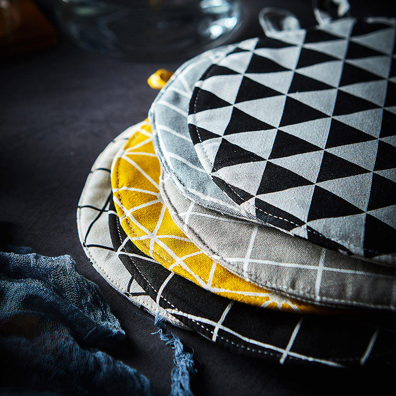 Nordic simple cotton and hemp placemat heat insulation mat Household round thickened anti-scalding high temperature heat insulation Japanese table bowl mat