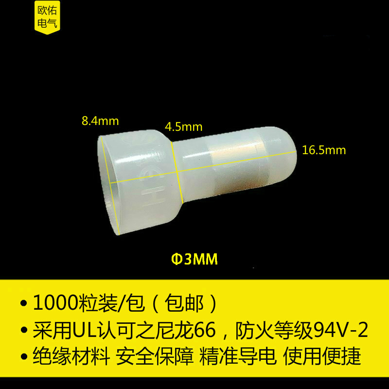 Nylon wire wiring cap crimping cap fast paralleler wiring head crimping nylon nipple copper tube 3mm