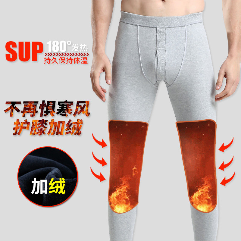 Adult sanitary pants with knee pads plus velvet men's cotton thin section youth middle-aged and elderly dad warm underwear spring autumn winter