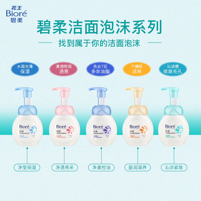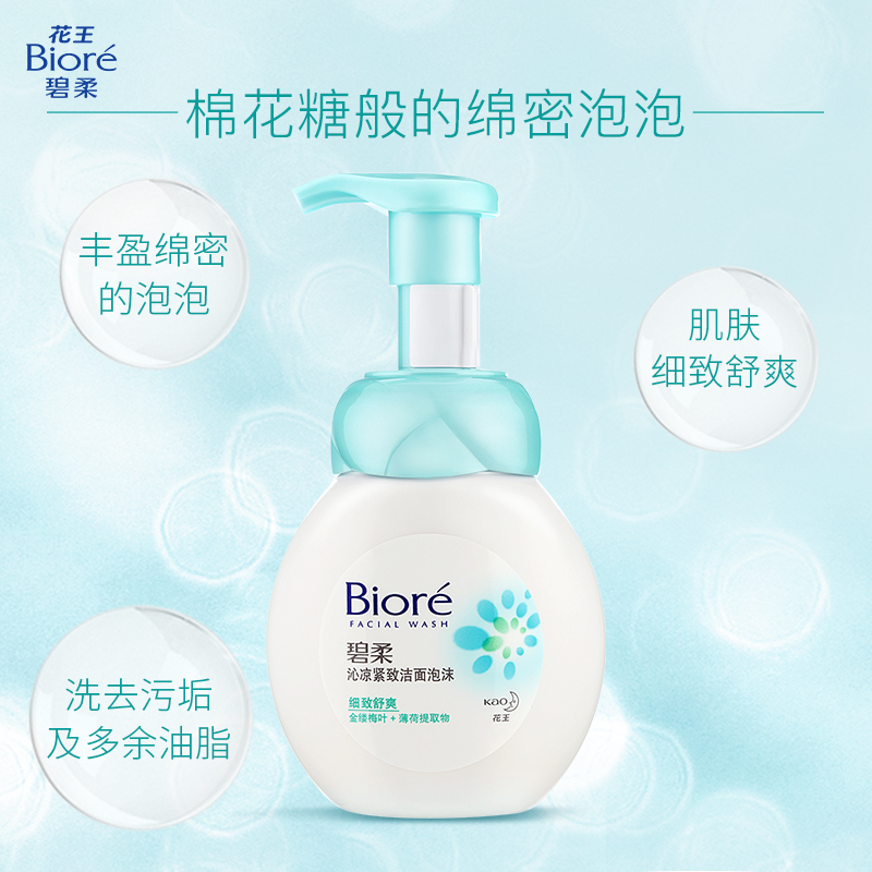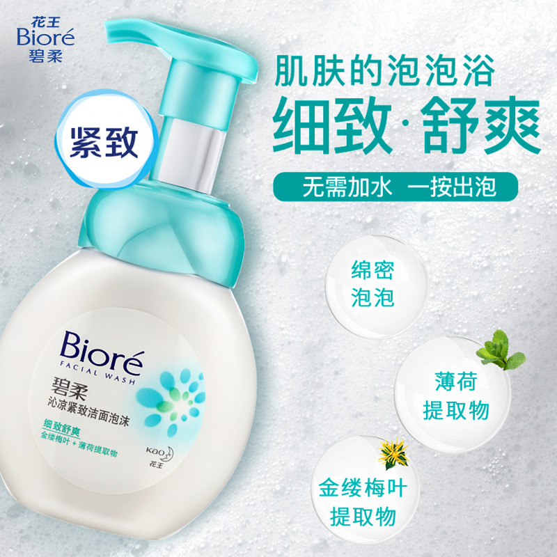 Biore flower Wang Birou cool and firming facial cleanser foam deep cleaning pores mild facial cleanser press type