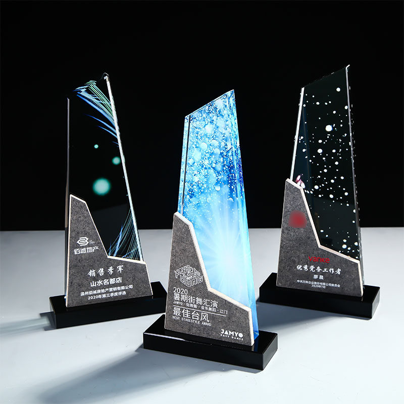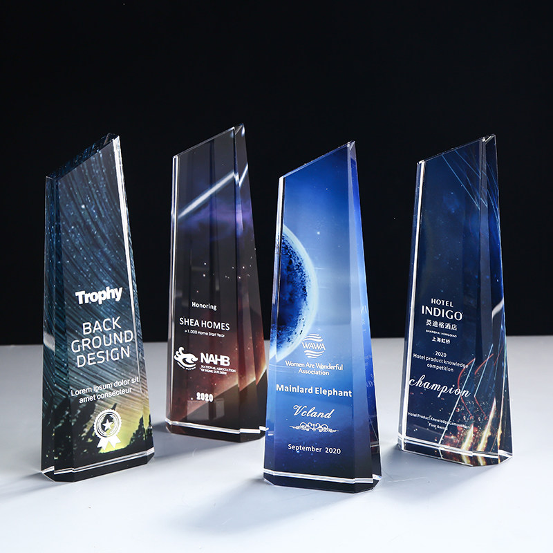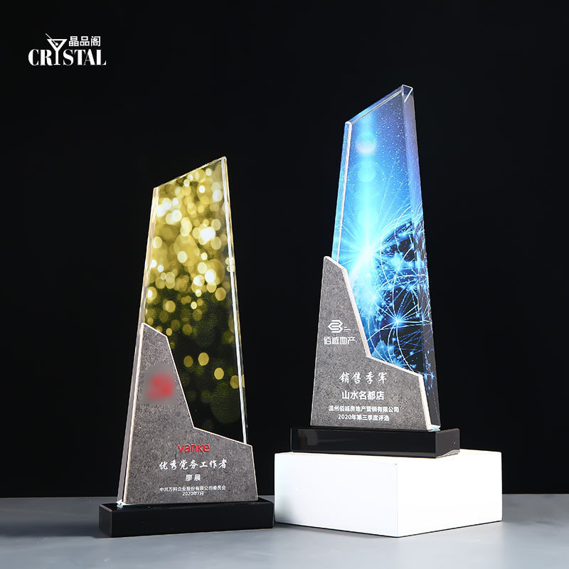 Transparent Crystal Trophy Medal Licensed Plate Bevel Color Printing Creative Simplicity Custom Red Competition Outstanding Employees