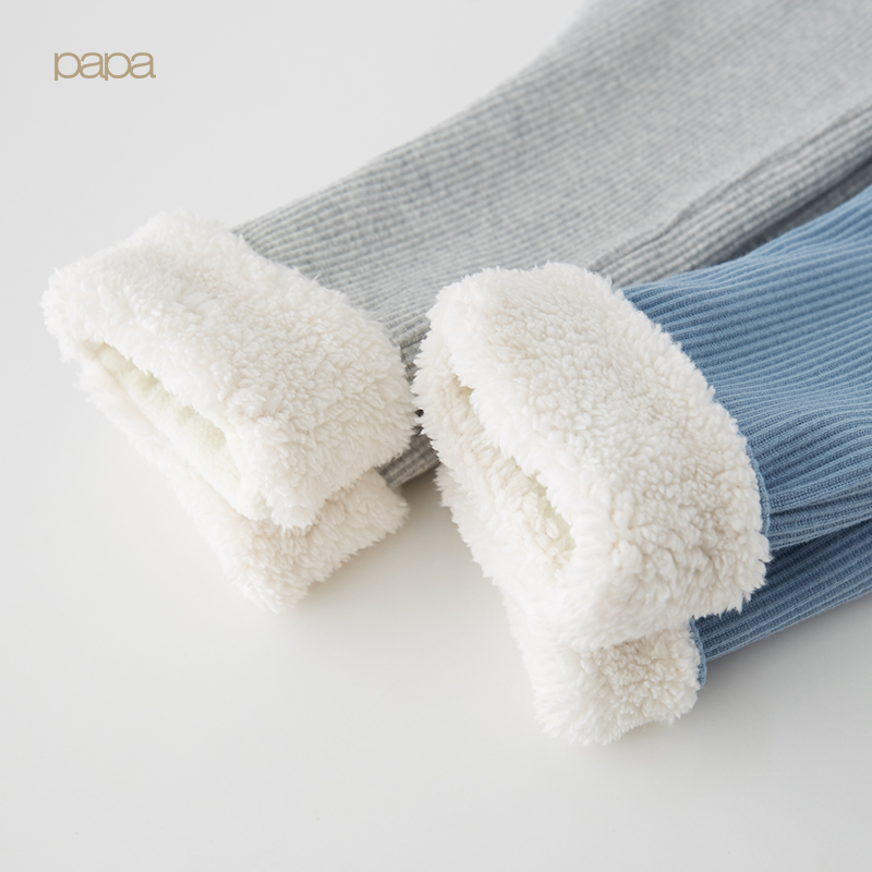 papa baby autumn and winter flannel pants Male baby imitation lambskin pants thickened warm girls out pants