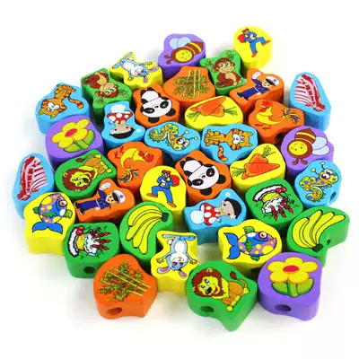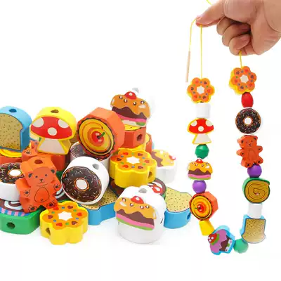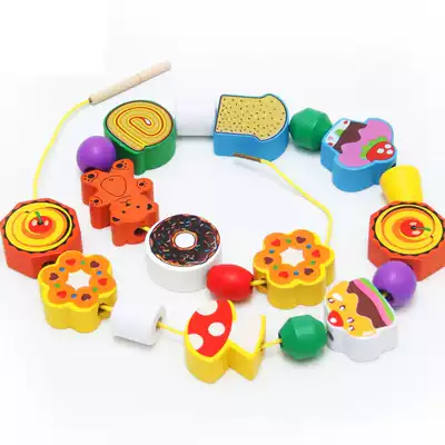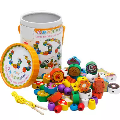 Children's educational beading and bead-wearing toys Wooden baby early education stringing and bead-winding building blocks for boys and girls 1-2-3-5 years old