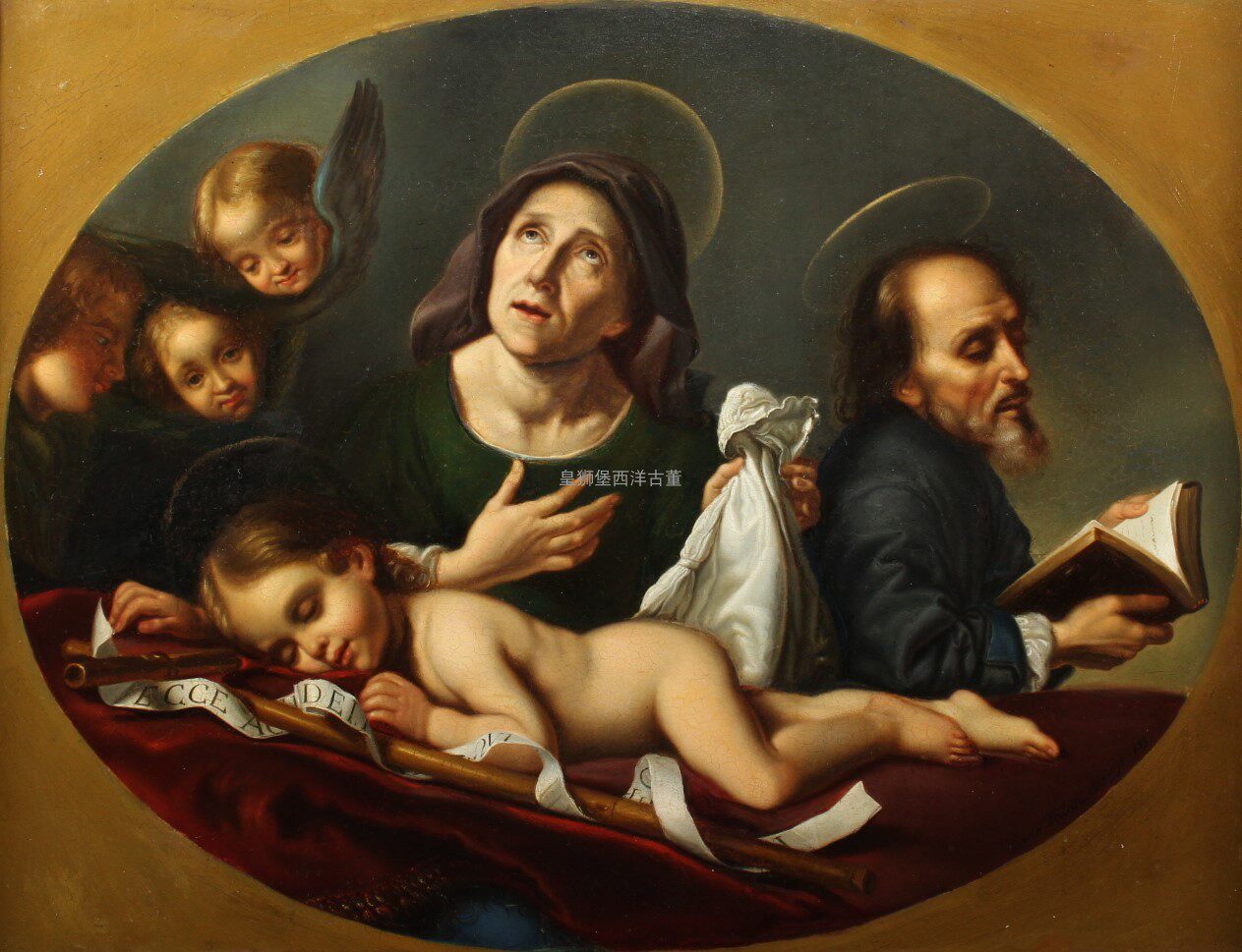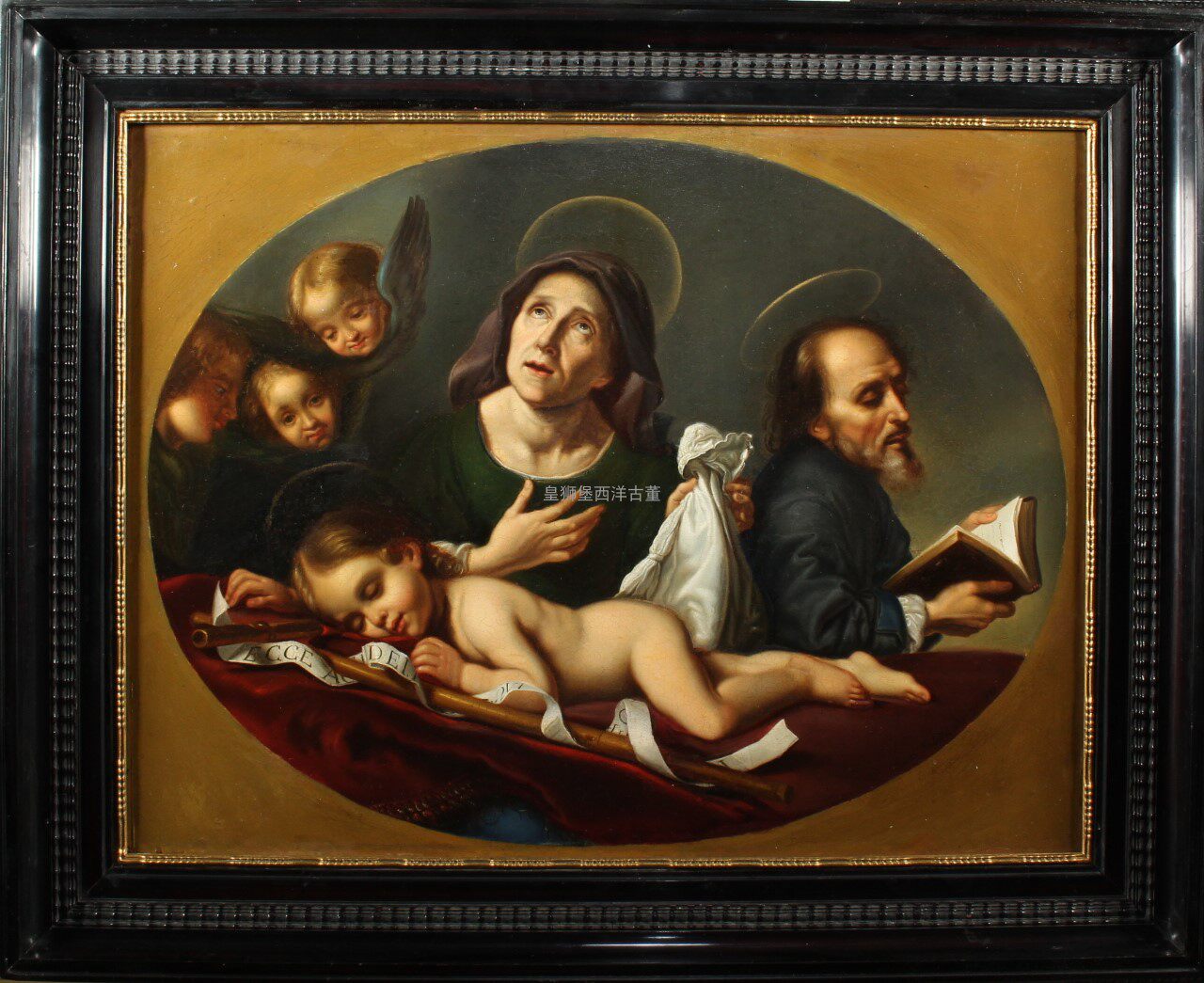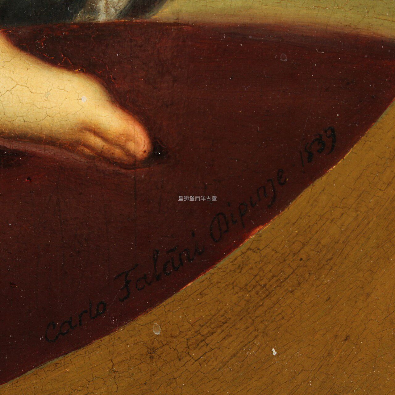 A painting of a religious subject by Carlo Falsini, an antique oil painting in the Imperial Lion's castle