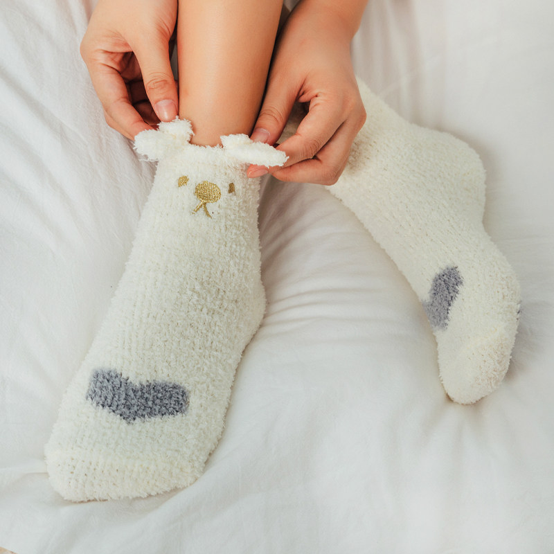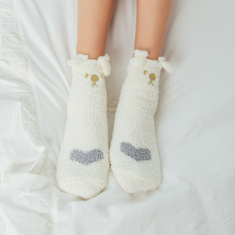 Douyin same style home sleeping socks women's super hot cute coral fleece socks with ears plus velvet thickened floor socks