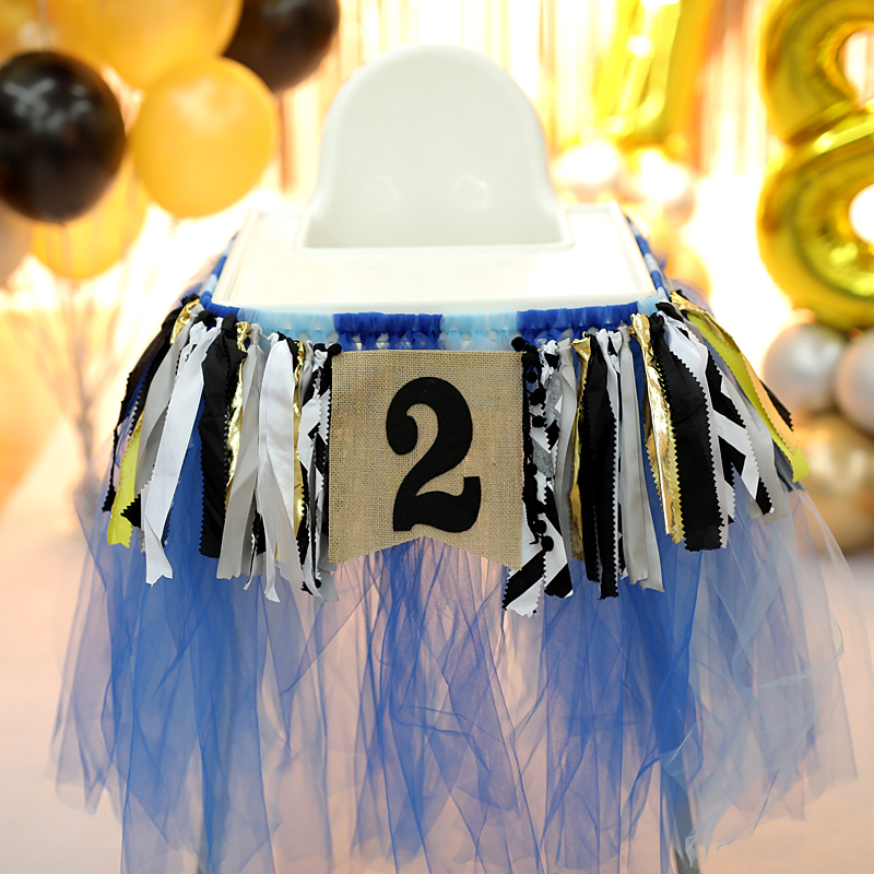 Baby seat pull flag apron decoration 1 year old children's chair black gold pink pull flag canvas strip Birthday party 2 year old decoration