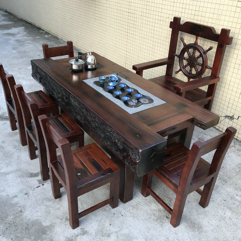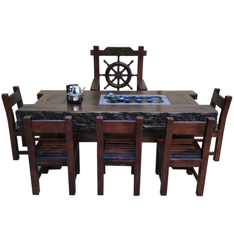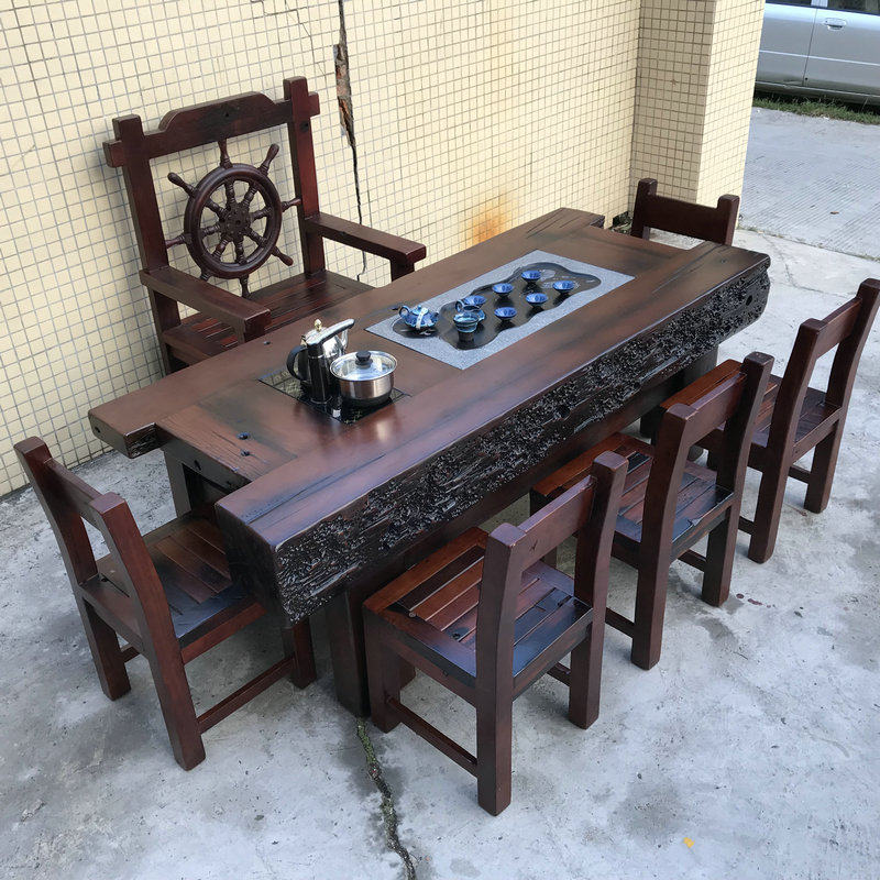 Old boat wood minimalist living-room office large tea table keel Kung Fu tea Taichung style solid wood furniture tea table chair combination