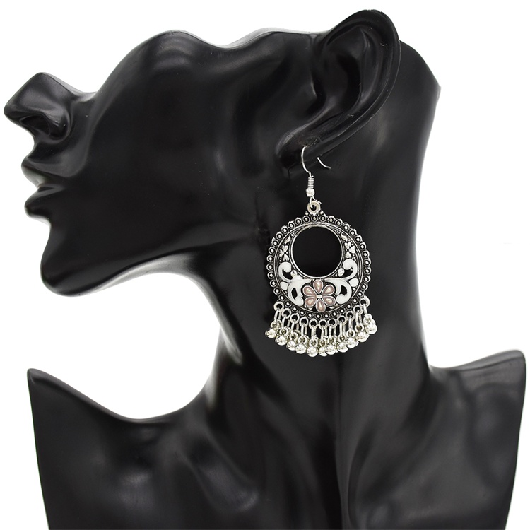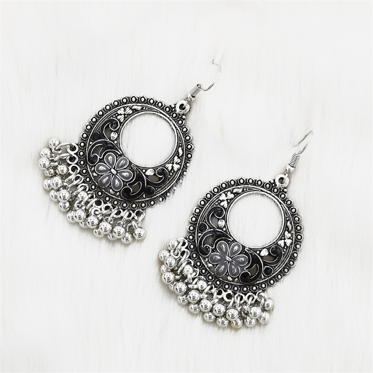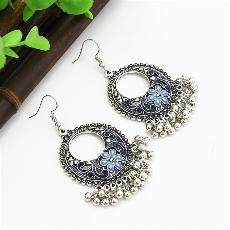 Edwin European and American fashion Bohemia National style old goods silver inlaid enamel small flower ball Bell tassel earrings female